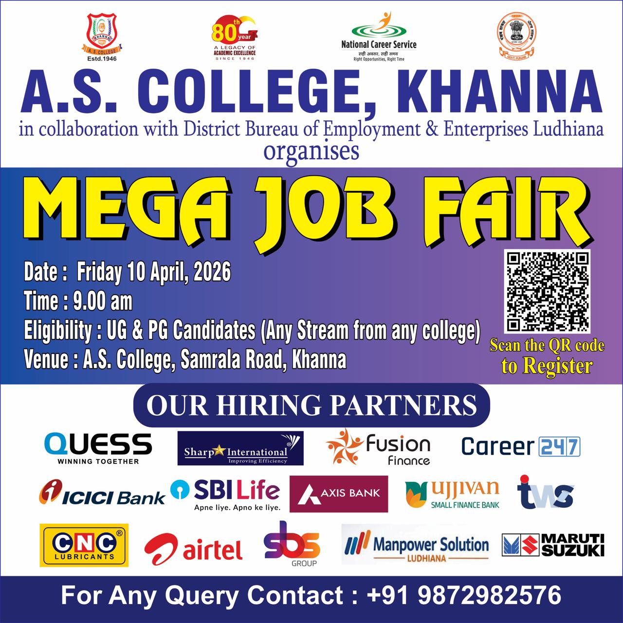 Mega Job Fair 2026 in Collaboration with DBEE,Ludhiana on 10 April 2026